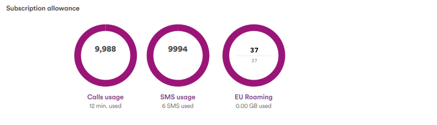 Here you will see a summary of what is remaining in your package for your calls, texts and data at home and in the EU.
